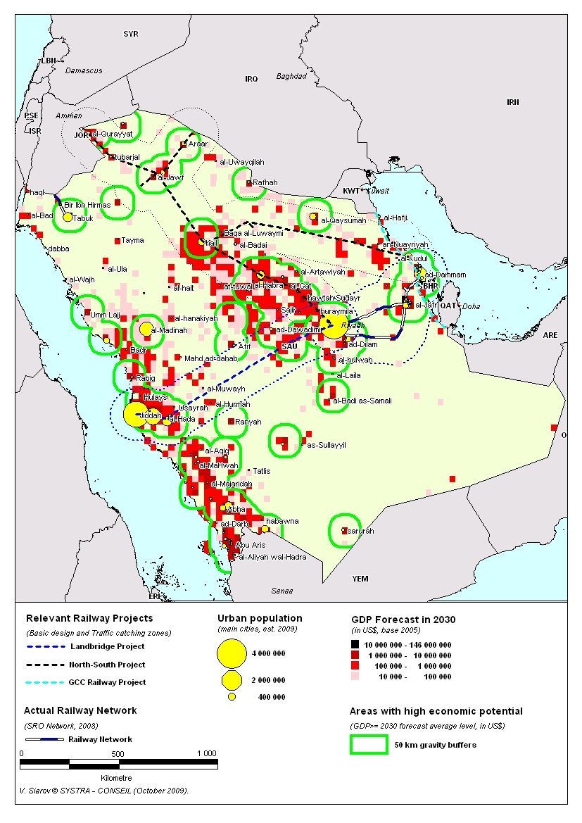 2009 - Etude de faisabilité ‘LANDBRIDGE': Prévisions de trafics et expertise du futur raccordement ferroviaire Jeddah-Riyadh-Dammam/Jubail', Arabie Saoudite (Client privé : GIB-Bahreïn pour SRO Arabie Saoudite, Mandataire SYSTRA). Expert clé ferroviaire - Budget >250k€. >>